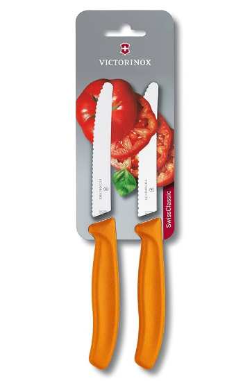 Victorinox paring knife SwissClassic, wavy edge, orange, 2 pieces blistered